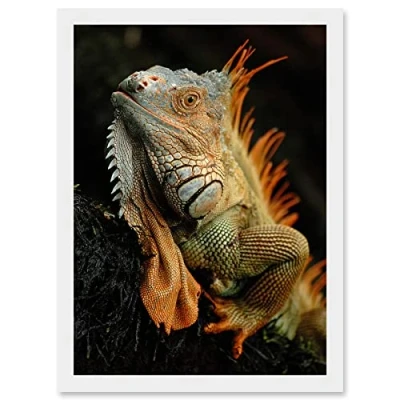Wee Blue Coo Photo Animal Iguana Lizard Reptile Scales Spines Artwork Framed Wall Art Print A4