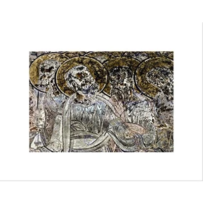 Wee Blue Coo Photo Antique Catholic Mural Defaced Saints Halo Church Religion Wall Art Print
