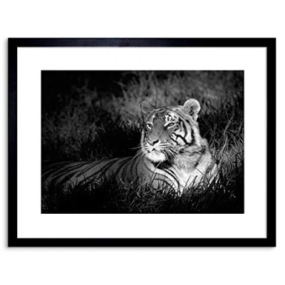 Wee Blue Coo PHOTO BENGAL TIGER BLACK WHITE SITTING FRAMED PRINT F97X2786
