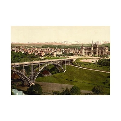 Wee Blue Coo Photo Berne Switzerland Bridge City Mountains Picture Wall Art Print