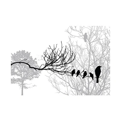 Wee Blue Coo Photo Birds Silhouette Branch Illustration B&W Wall Art Print