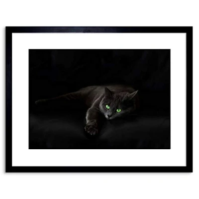 Wee Blue Coo PHOTO BLACK CAT YELLOW EYES LAZY SLEEPY FRAMED PRINT F97X2817
