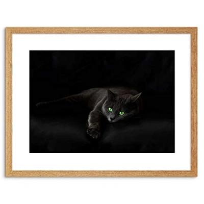 Wee Blue Coo PHOTO BLACK CAT YELLOW EYES LAZY SLEEPY FRAMED PRINT F97X2817