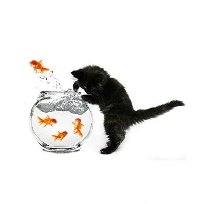 Wee Blue Coo Photo Black Kitten Cat Goldfish Bowl Wall Art Print