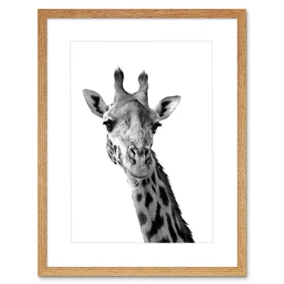 Wee Blue Coo Photo Black White Giraffe Portrait Face Framed Wall Art Print