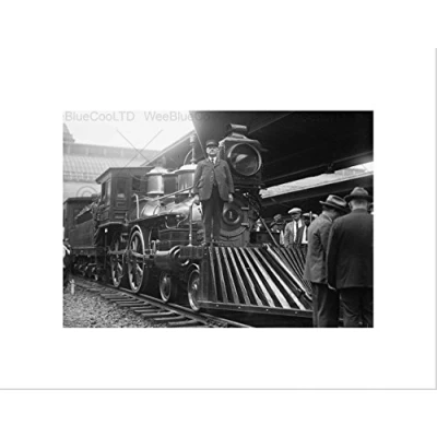 Wee Blue Coo Photo Black White Train Conductor Steam Engine Framed Art Print B12X9991