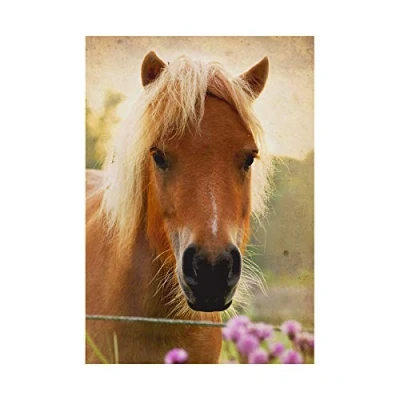 Wee Blue Coo Photo Brown Horse Flowers Animal Wall Art Print