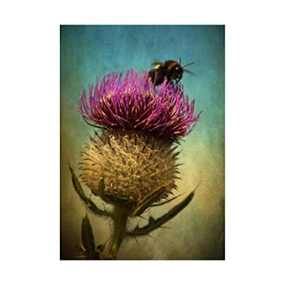 Wee Blue Coo Photo Bumble Bee Thistle Flower Scotland Picture Wall Art Print