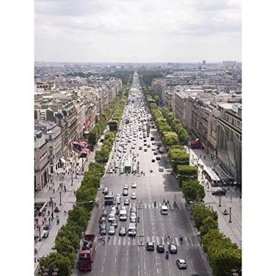 Wee Blue Coo Photo Cityscape Champs Elysees Paris France Busy Traffic Art Print Poster Wall Decor 12X16 Inch