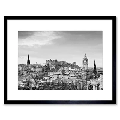 Wee Blue Coo Photo Cityscape Edinburgh Castle Rooftops Black White Framed Wall Art Print