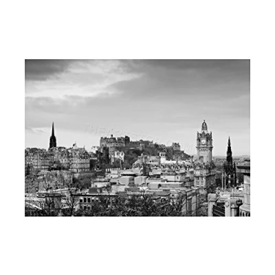 Wee Blue Coo Photo Cityscape Edinburgh Castle Rooftops Black White Wall Art Print