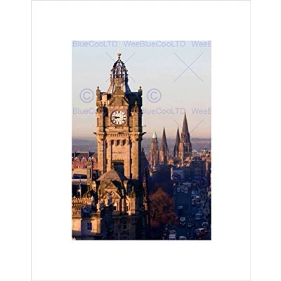 Wee Blue Coo PHOTO CITYSCAPE EDINBURGH PRINCES STREET COLOUR FRAMED ART PRINT MOUNT B12X13291
