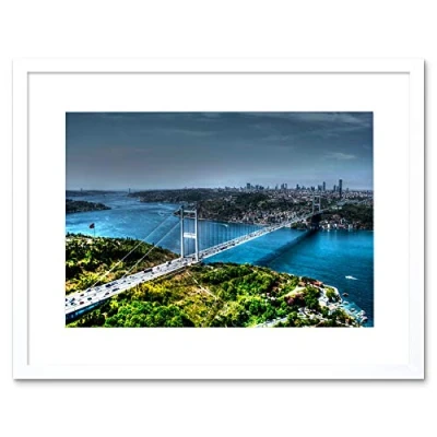 Wee Blue Coo Photo Cityscape Istanbul Turkey Bridge River Cool Framed Wall Art Print
