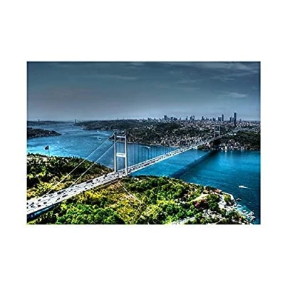 Wee Blue Coo Photo Cityscape Istanbul Turkey Bridge River Cool Wall Art Print