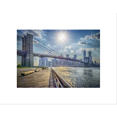 Wee Blue Coo PHOTO CITYSCAPE NEW YORK BROOKLYN BRIDGE LANDMARK RIVER FRAMED PRINT B12X8552