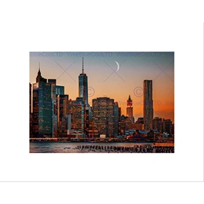 Wee Blue Coo PHOTO CITYSCAPE NEW YORK CITY USA MOON OVER MANHATTAN FRAMED ART PRINT B12X13025