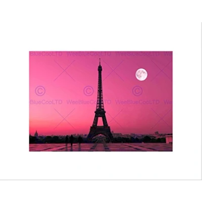 Wee Blue Coo Photo Cityscape Paris France Dawn Pink Moon Eiffel Tower Wall Art Print