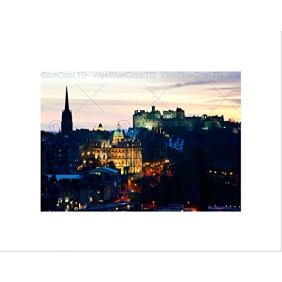 Wee Blue Coo PHOTO CITYSCAPE SKYLINE EDINBURGH CASTLE SUNSET DUSK FRAMED ART PRINT B12X13294