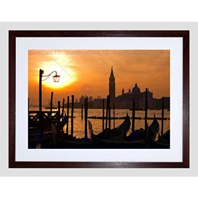 Wee Blue Coo Photo Cityscape Venice Italy Sunrise Dawn Sun Canal Framed Wall Art Print