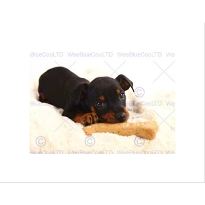 Wee Blue Coo PHOTO COMPOSITION ANIMAL DOG DOBERMAN TOY PUPPY BONE FRAMED ART PRINT B12X8507