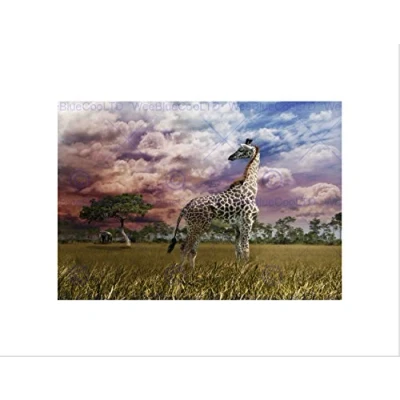 Wee Blue Coo Photo Composition Animal Giraffe Elephant Storm Clouds Africa Art Wall Print