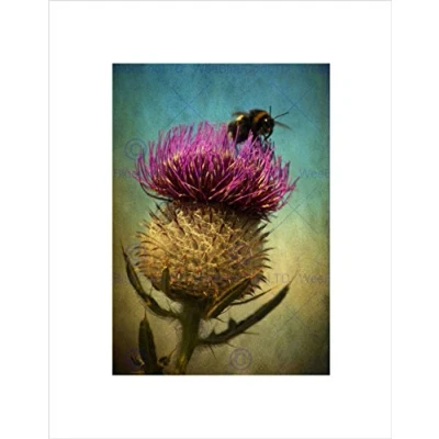 Wee Blue Coo PHOTO COMPOSITION BUMBLE BEE THISTLE FLOWER SCOTLAND FRAMED ART PRINT B12X13048