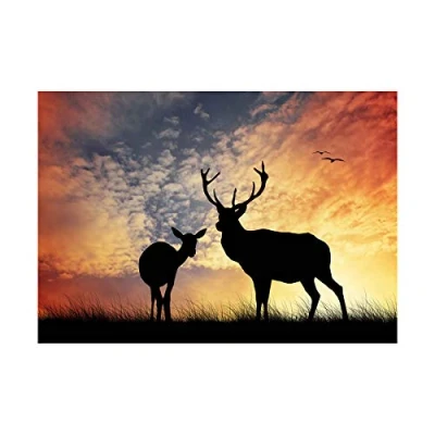 Wee Blue Coo Photo Composition Deer Silhouette Sunset Sky Stag Picture Wall Art Print