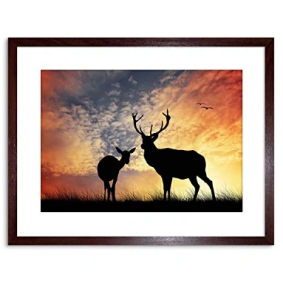Wee Blue Coo Photo Composition Deer Silhouette Sunset Stag Framed Wall Art Print