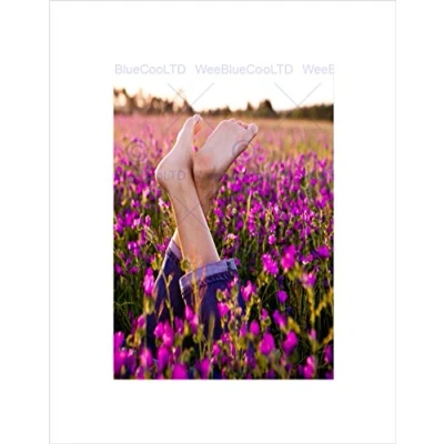 Wee Blue Coo Photo Composition Flower Field Meadow Relax Feet Up Purple Wall Art Print