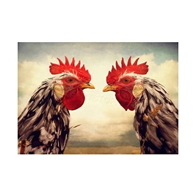 Wee Blue Coo Photo Composition Roosters Birds Chicken Farm Symmetry Wall Art Print