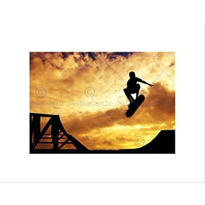Wee Blue Coo Photo Composition Silhouette Skateboarder Sunset Wall Art Print