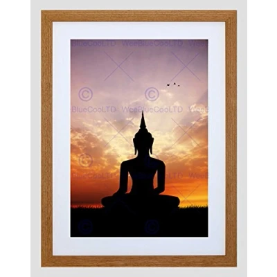 Wee Blue Coo Photo Composition Silhouette Statue Buddha Sunset Framed Wall Art Print