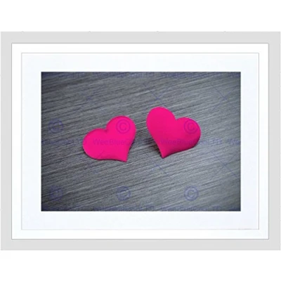 Wee Blue Coo PHOTO COMPOSITION TWO PINK LOVE HEART SHAPES TEXTURED FRAMED ART PRINT B12X13091
