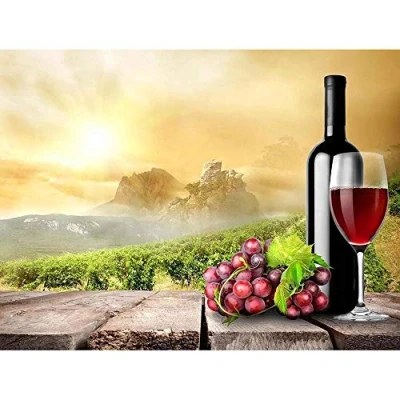 Wee Blue Coo Photo Composition Wine Grapes Vines Sun Bottle Art Print Poster Wall Decor 12X16 Inch