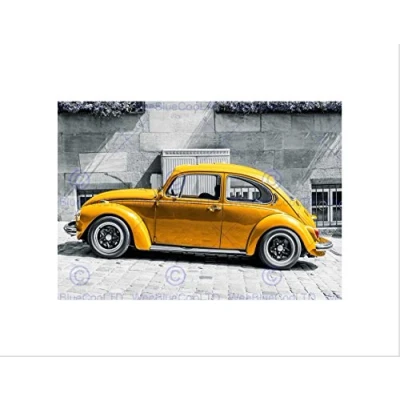 Wee Blue Coo PHOTO COMPOSITION YELLOW VINTAGE CAR AUTOMOBILE FRAMED ART PRINT MOUNT B12X13103