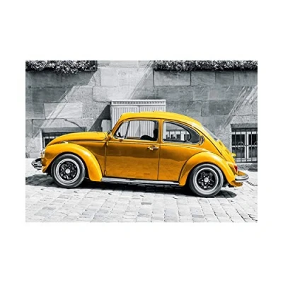 Wee Blue Coo Photo Composition Yellow Vintage Car Automobile Wall Art Print