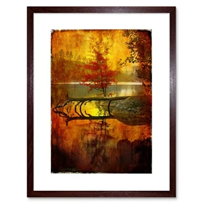 Wee Blue Coo Photo Effect Lake Tree Autumn Grunge Framed Wall Art Print