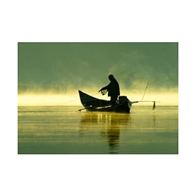 Wee Blue Coo Photo Fisherman Fishing Lake Green Yellow Wall Art Print