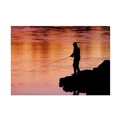 Wee Blue Coo Photo Fishing Silhouette River Water Wall Art Print