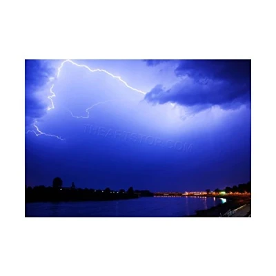 Wee Blue Coo Photo Fork Lightning Sky Electric Wall Art Print