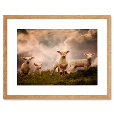 Wee Blue Coo Photo Lambs Sheep Farm Animal Clouds Framed Wall Art Print
