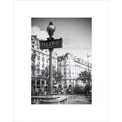 Wee Blue Coo Photo Landmark Retro Metro Sign Paris France Black White Wall Art Print