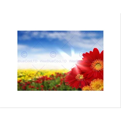 Wee Blue Coo Photo Landscape Composition Flower Field Yellow Red Wall Art Print