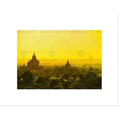 Wee Blue Coo PHOTO LANDSCAPE CULTURAL BAGAN TEMPLE MYANMAR SUNSET FRAMED ART PRINT B12X13307