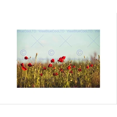 Wee Blue Coo PHOTO LANDSCAPE POPPY FLOWER FIELD MEADOW RED PETAL FRAMED ART PRINT B12X13124