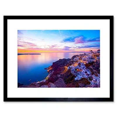 Wee Blue Coo PHOTO LANDSCAPE SEASCAPE SANTORINI GREECE SUNSET FRAMED ART PRINT B12X13309