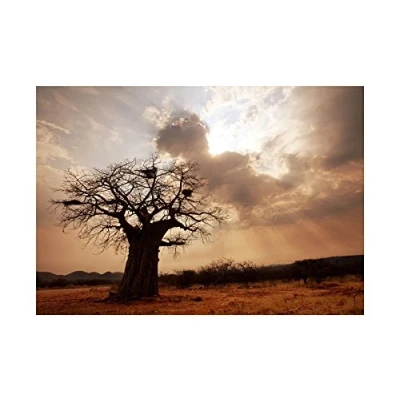 Wee Blue Coo Photo Landscape Single Lone Baobab Tree Sunbeam Wall Art Print