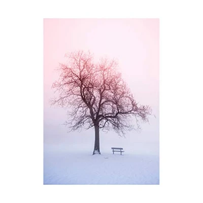 Wee Blue Coo Photo Landscape Winter Snow Foggy Sunrise Tree Bench Wall Art Print