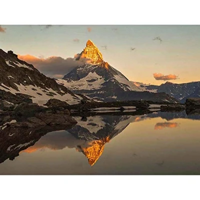 Wee Blue Coo Photo Matterhorn Mountain Reflected Lake Art Print Poster Wall Decor 12X16 Inch