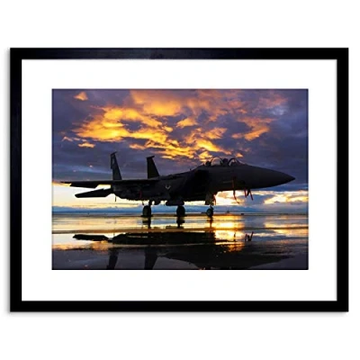 Wee Blue Coo Photo Military Aircraft Fighter Bomber Jet Sunset Framed Wall Art Print